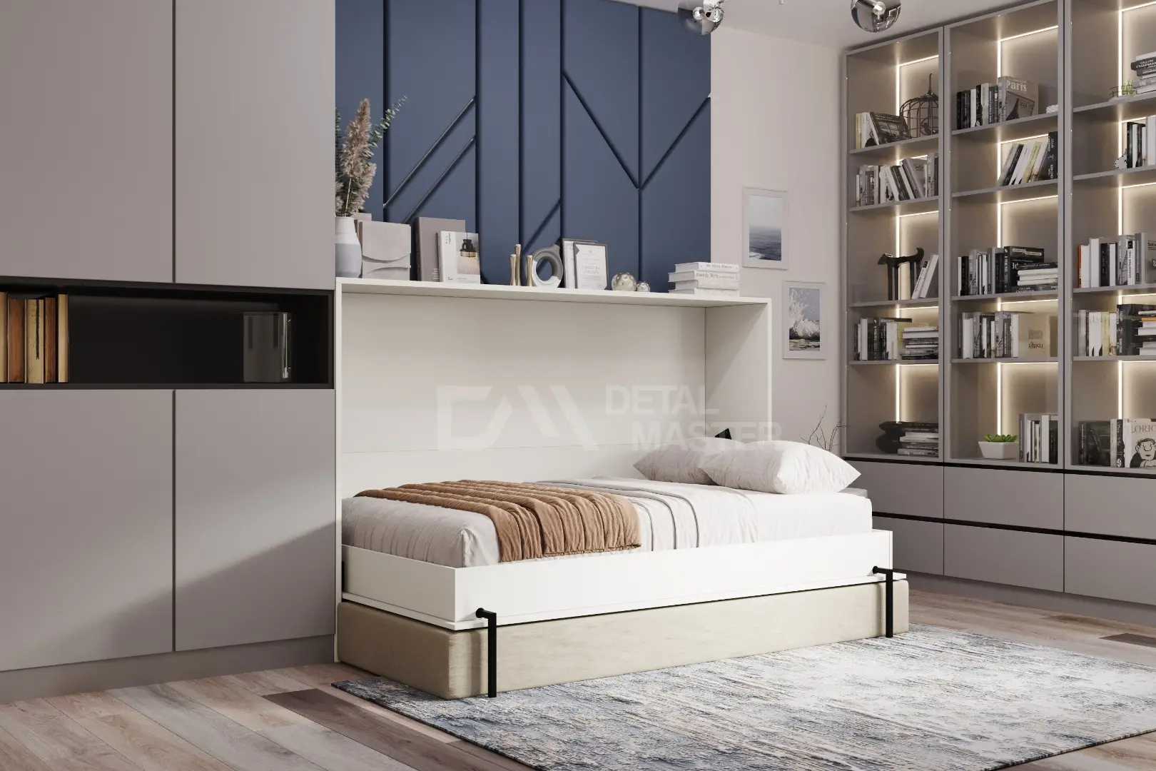 Горизонтальная шкаф-кровать "Galaxy Start" идеально подходит для узких комнат, сохраняя максимум свободного пространства.
